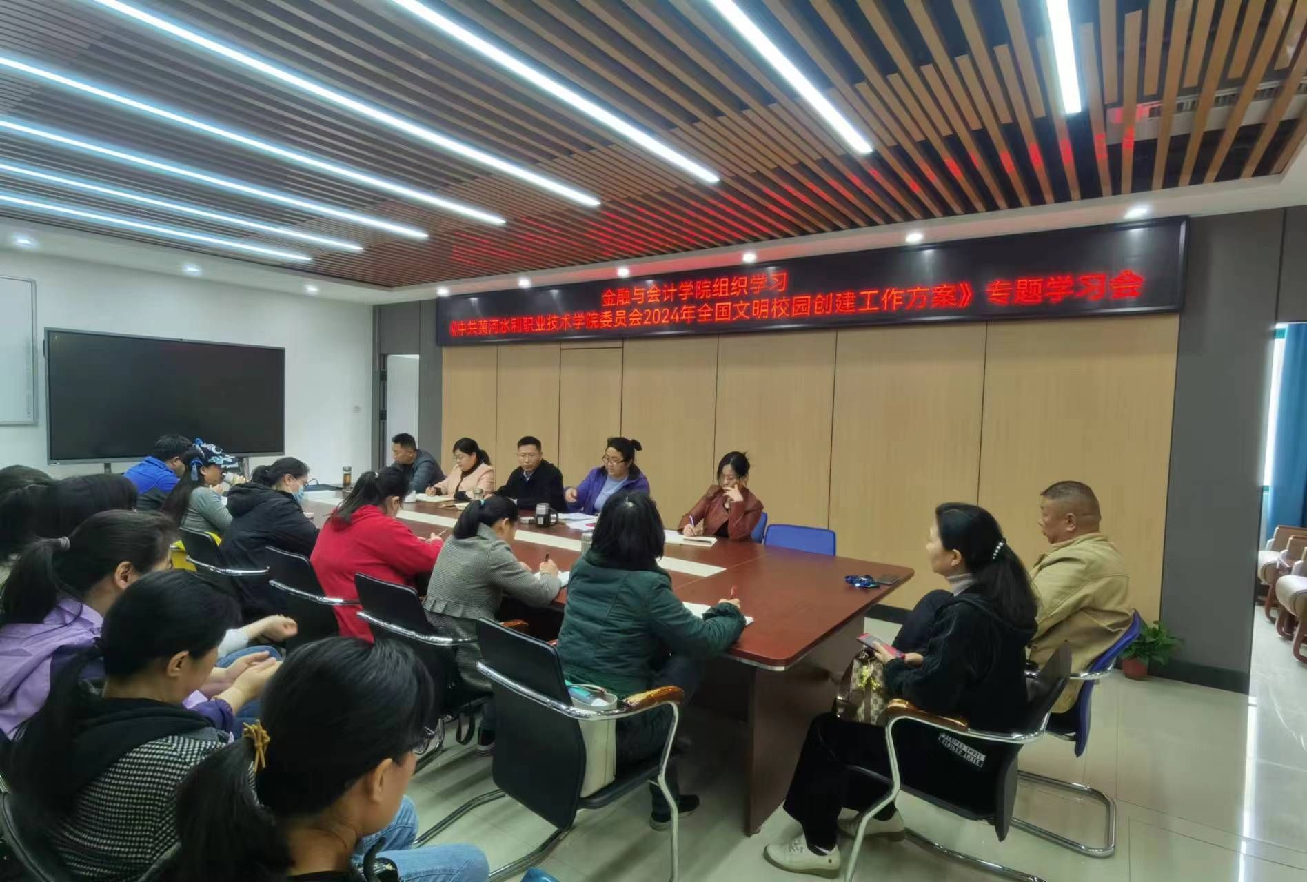 4月2日下午,金融与会计学院在SY5412会议室举行政治理论学习,本次学习内容为《中共黄河水利职业技术学院委员会2024年全国文明校园创建工作方案》(以下简称《创建工作方案》),全体教职工参加会议。会议由党总支书记胡晓慧主持。