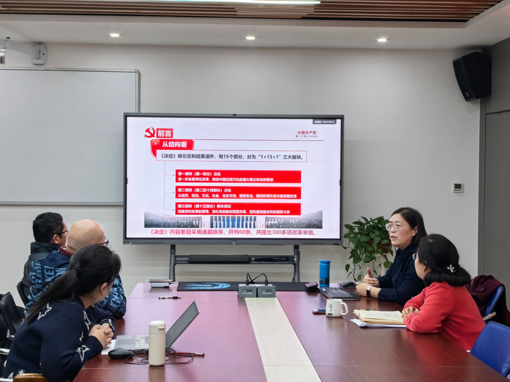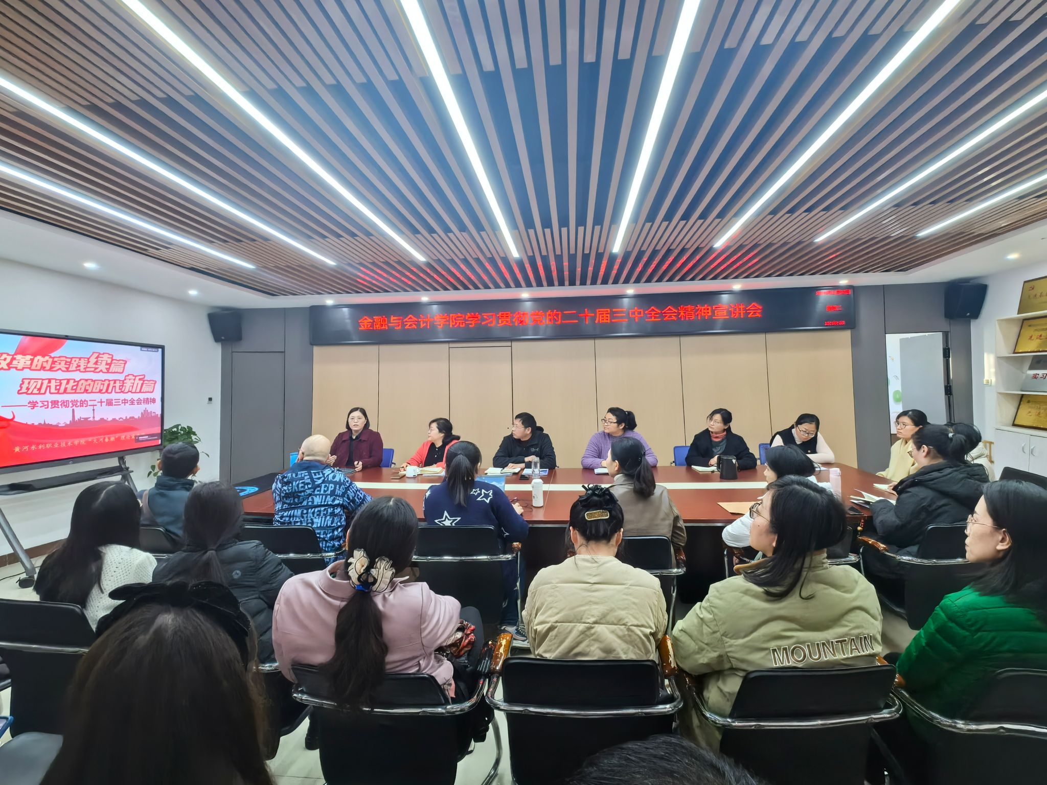 1126日下午,金融与会计学院邀请我校马克思主义学院的赵俊亚教授在SY5412会议室为我院全体教师作学习贯彻党的二十届三中全会精神辅导报告。报告由党总支书记胡晓慧主持,全体教师和学生党员参加了此次宣讲会。