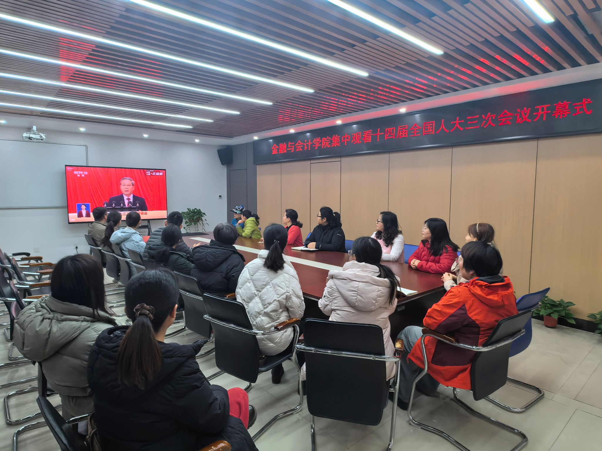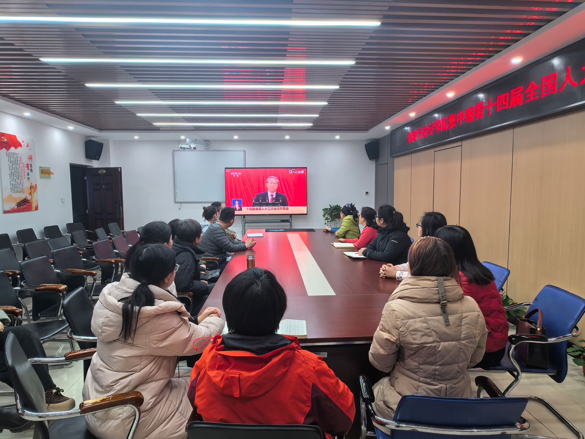 3月5日上午,十四届全国人大三次会议在北京隆重开幕。金融与会计学院在SY5412会议室召开专题学习会,集中观看十四届全国人大三次会议开幕式直播。院领导班子和教师代表参加会议。