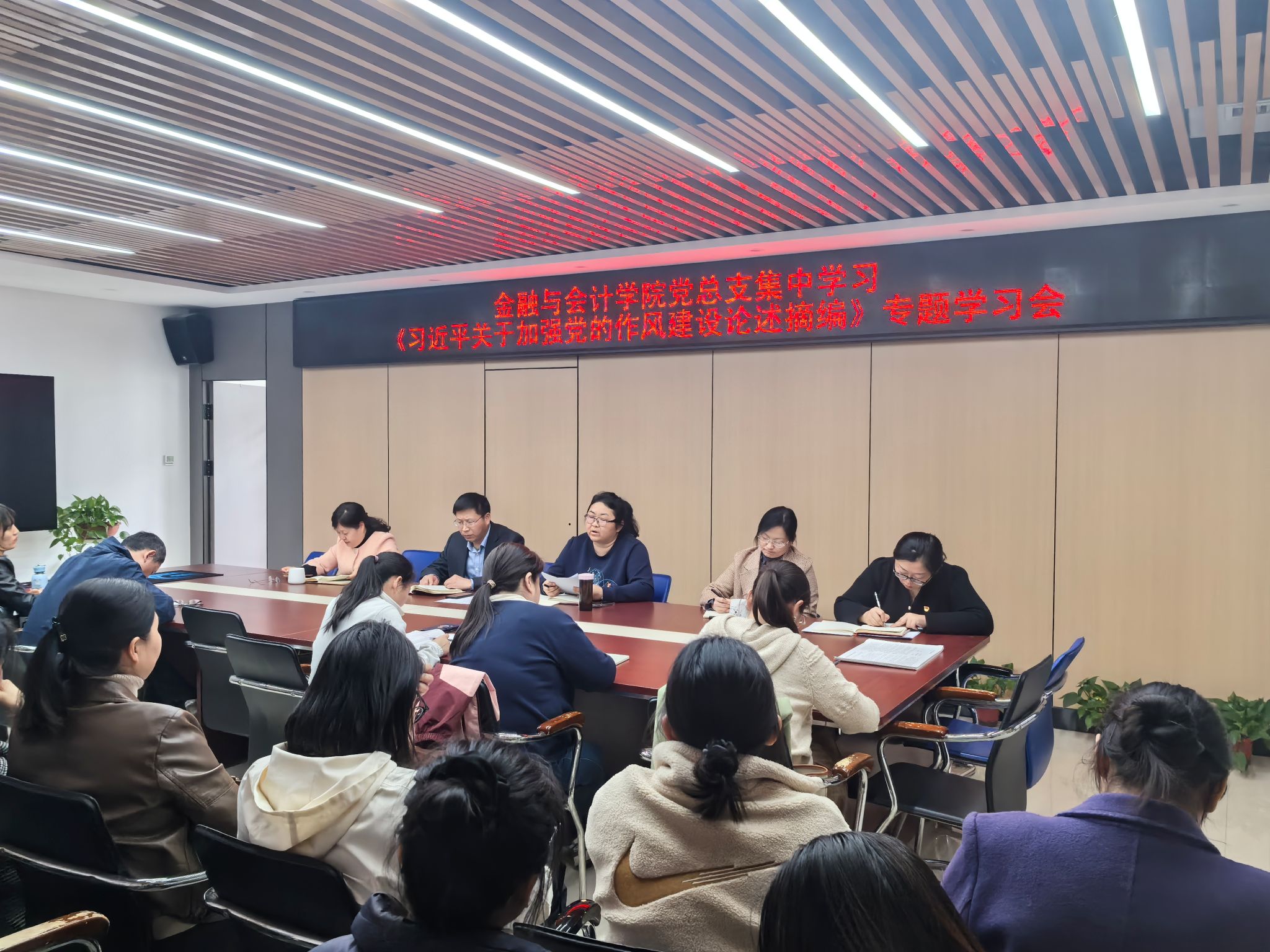 4月1日下午,金融与会计学院在SY5412会议室召开政治理论专题学习会,集中学习《习近平关于加强党的作风建设论述摘编》和中央八项规定及其实施细则,全体教职工参加,会议由党总支书记胡晓慧主持。