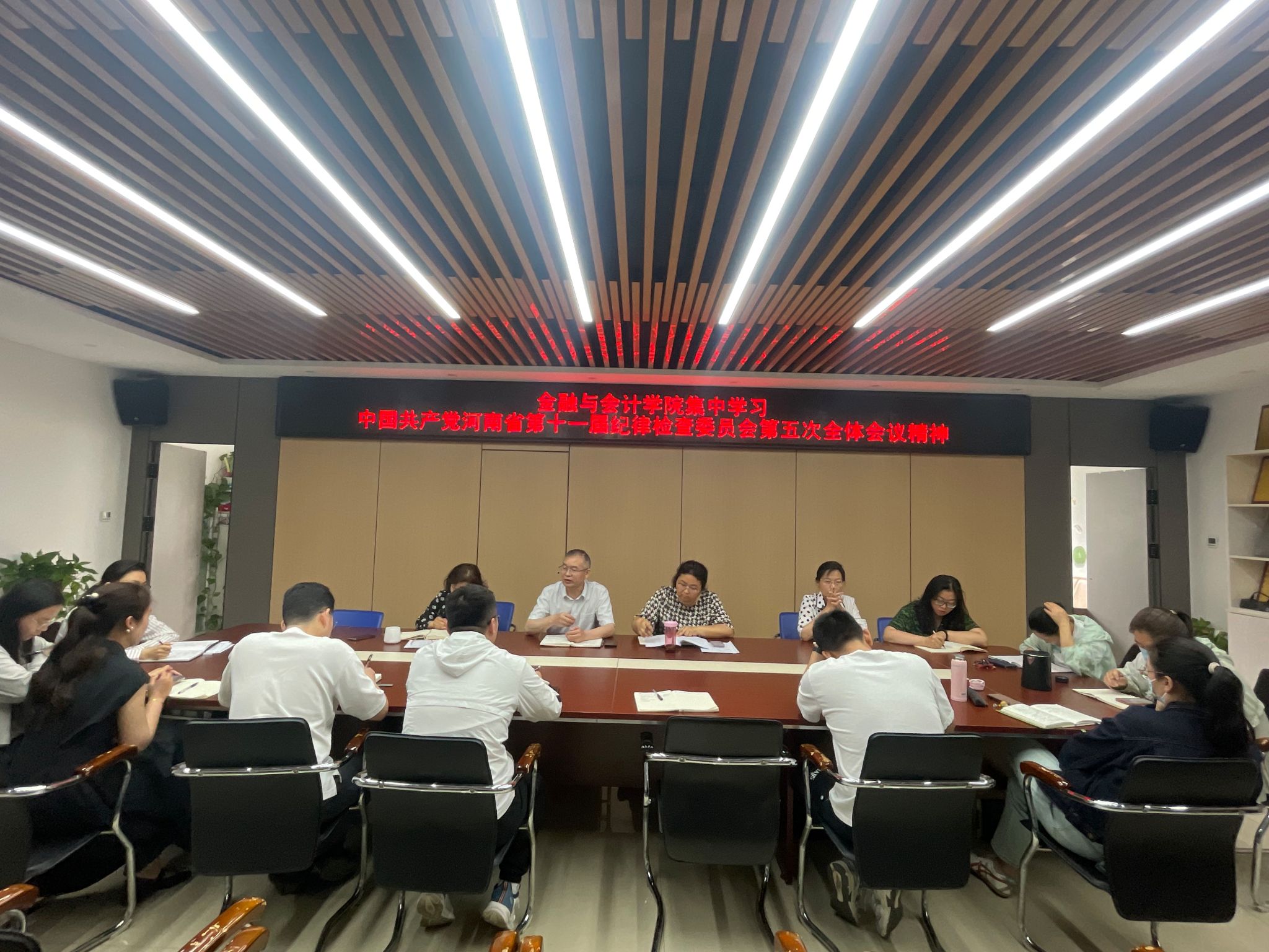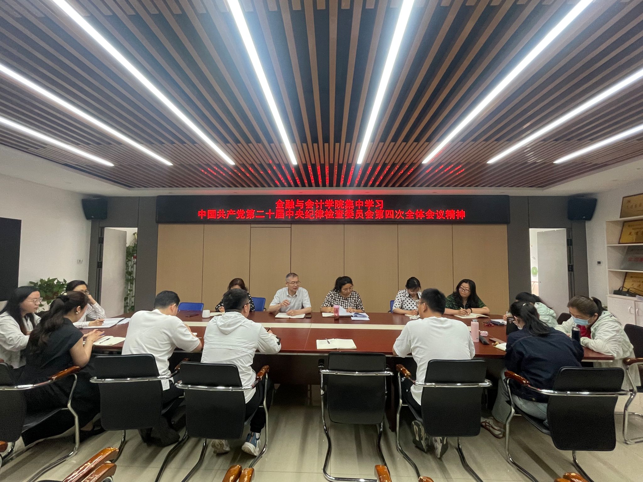 5月27日上午,金融与会计学院在SY5412会议室召开政治理论专题学习会,集中学习中国共产党第二十届中央纪律检查委员会第四次全体会议精神、中国共产党河南省第十一届纪律检查委员会第五次全体会议精神,全体科级干部参会,会议由院长吴宗奎主持。