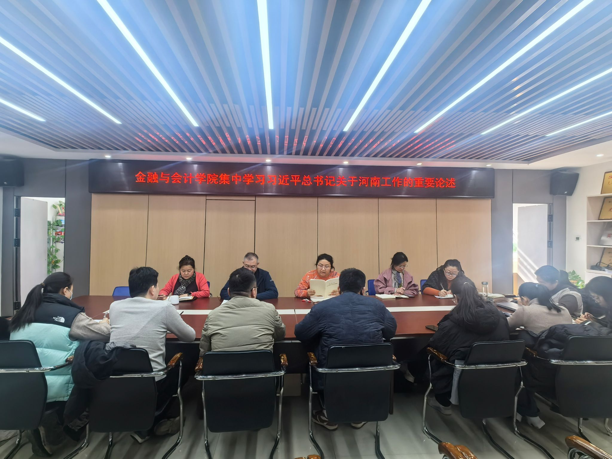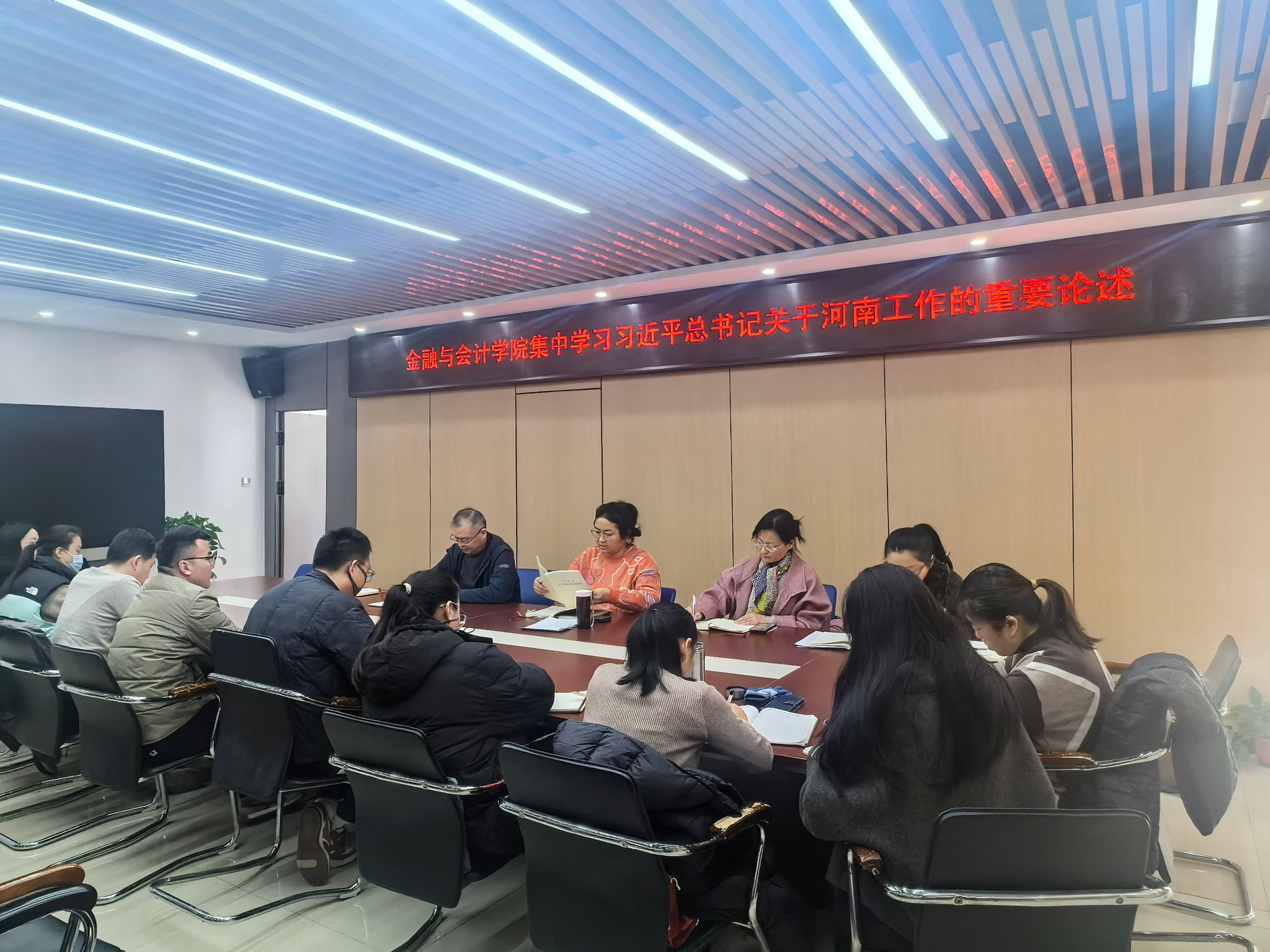 11月18日上午,金融与会计学院在SY5412会议室召开政治理论专题学习会,集中学习习近平总书记在河南考察时的重要讲话、习近平总书记关于河南工作的重要论述,全体科级以上干部参加,会议由院长吴宗奎主持。