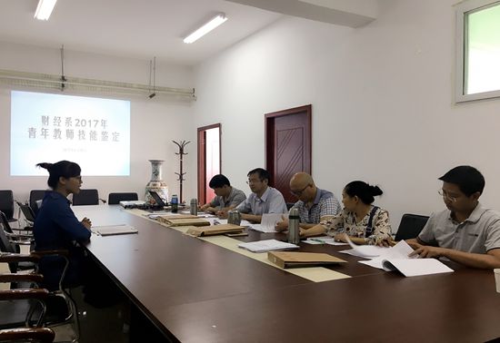 6月27日下午4:00,财经系在SY8511举行新进青年教师试讲活动。新进教师孔维琼进行了30分钟的试讲,参加听课的教师、督导专家余爱民主任在仔细查看教学设计和认真听取试讲后,分别对试讲教师的备课情况、教学内容、教学方法做出评定,并针对试讲情况对教学内容、教学方法、教学手段及其处理方法提出了宝贵的意见和建议。