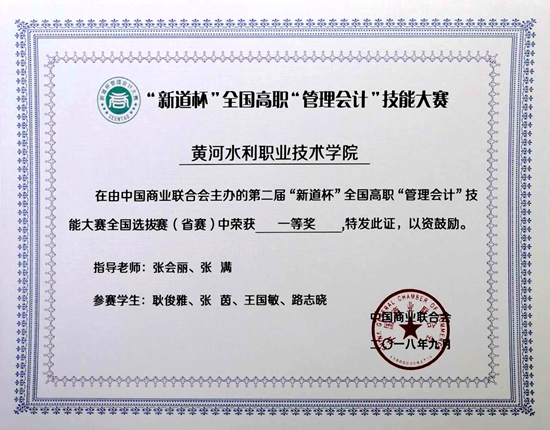 我院在2018年第二届全国高职“管理会计”技能大赛河南省赛中获一等奖