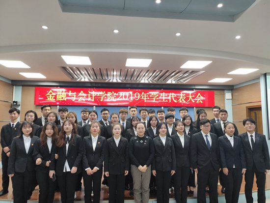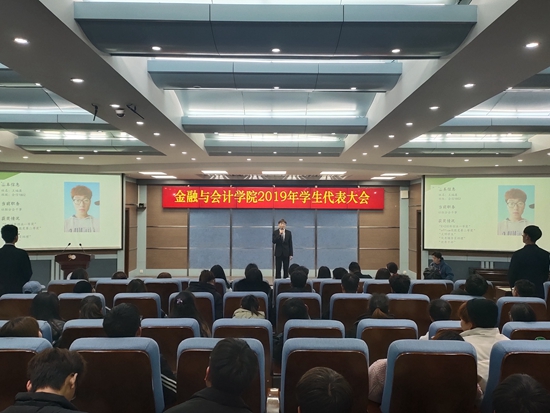 在庄严肃穆的国歌声中,大会拉开序幕。校团委书记李聪对我院召开学生代表大会表示祝贺并致辞,希望我院学生能够继往开来、团结奋进,坚定理想信念,为中华民族的伟大复兴不懈奋斗。院党总支书记殷莺肯定了我院学生分会在2019年工作中取得的成绩并代表学院向为我院建设与发展辛勤付出的上一届全体学生干部和广大同学表示感谢。殷书记指出,高校学生会是在党的领导下,代表广大青年学生愿望和利益的群众组织,是培养社会主义事业合格建设者和接班人的重要培养基地,学代会的召开对于促进学院学生工作的健康发展。引领大学生深入学习习近平新时代中国特色社会主义思想、践行社会主义核心价值观有着十分重要的意义。随后,学生分会主席陈文琦向大会作2019年工作报告。接着,参加学代会的34位候选人分别就对未来工作的展望进行演讲。学生代表们秉承公平、公正、公开、民主的原则,投出自己神圣的一票。经过紧张计票,分团委书记马峥宣布当选为金融与会计学院2019年学生分会委员会委员名单。