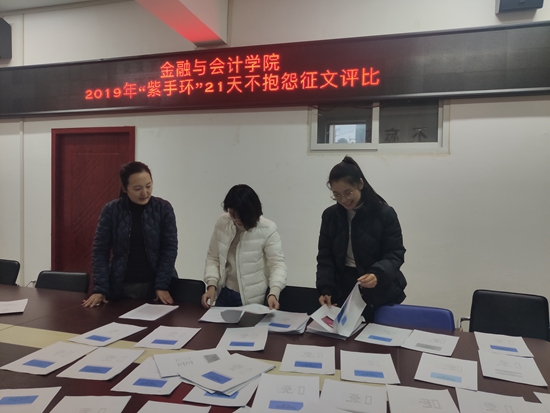 为宣传普及心理健康教育知识,引导学生树立正确的心理健康观念,我院于11月18日下午在SY5412会议室举办“紫手环,21天不抱怨”心理健康主题征文评选活动。分团委书记马峥、辅导员闫艳、魏晓慧担任本次评选活动评委。