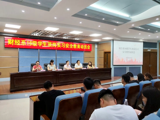 为进一步提高学生在实习期间的职业技能和自我保护意识,2018年6月19日下午,财经系2016级学生顶岗实习动员大会在3号实训楼学术报告厅召开。系党总支书记殷莺、副书记胡晓慧、分团委书记郝瑶、16级辅导员张满、17级辅导员闫艳和顶岗实习指导教师代表及2016级学生参加此次动员会。大会由分团委书记郝瑶主持。