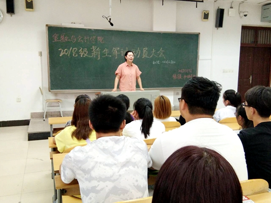 9月9日下午,我院2018级新生军训动员大会在JX6202和JX6203教室召开。金融与会计学院党支书记殷莺、副书记胡晓慧、分团委书记郝瑶、新生辅导员和琰、马峥出席了本次动员大会。大会由学生会副主席陈湘主持,开展此次大会旨在增加新生间的交流与认识,让新生可以快速进入军训状态,迎接大学生活。