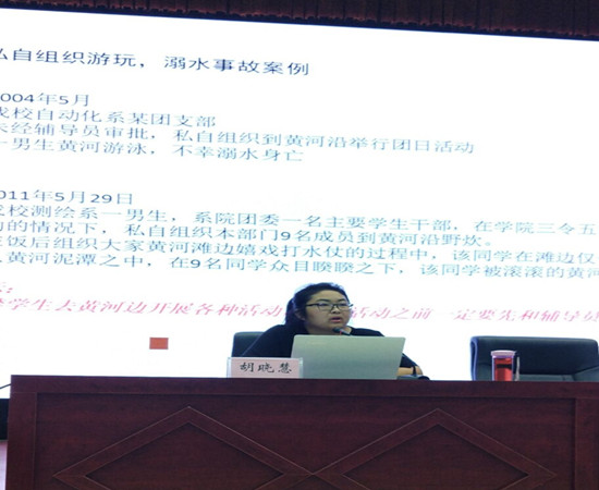 胡书记分别从防溺水、防盗、防火、交通安全、意外伤害、传销、网络贷款、网络诈骗等方面,结合以前发生过的真实案例,用生动活泼的语言向大家展示了发生在身边的危险事件,并通过剖析案例来教育大家如何注意安全,以及发生危险时该如何处理,提醒新生平时要提高警惕,防止发生意外事故。