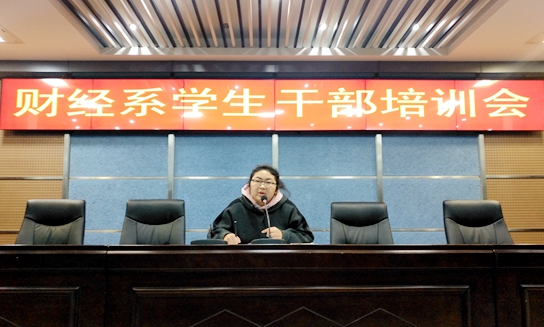 为了进一步增进学生干部的归属感,加强学生组织的团结凝聚力,12月20日下午,财经系在3号实训楼学术报告厅举办了首场学生干部培训讲座暨学生干部培训班启动仪式。系党总支书记殷莺、副书记胡晓慧,分团委书记郝瑶,团总支老师和琰、杨宁、张满、闫艳、孔维琼,分团委、学生会、社联分会及各年级班长、团支书等一百多名主要学生干部参加了此次大会。
