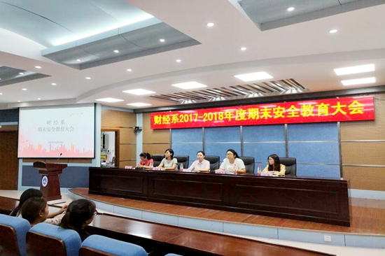 为进一步加强学校期末安全教育管理,预防各类安全事故的发生,提高同学们安全防范意识,确保学生的生命安全。6月19日18点,财经系期末安全教育大会在三号实训楼学术报告厅召开。出席本次会议的有财经系党总支书记殷莺、党总支副书记胡晓慧、分团委书记郝瑶、16级辅导员张满、17级辅导员闫艳,此次会议由分团委书记郝瑶主持,重点围绕期末前安全及假期学生安全教育等问题进行了部署。