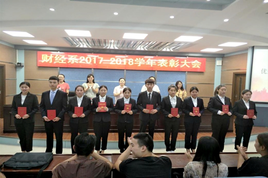 2018619日晚7点,财经系于3号实训楼学术报告厅举行了“财经系2017-2018学年表彰大会”。出席本次会议的有系党总支书记殷莺、副书记胡晓慧、分团委书记郝瑶、16级辅导员张满、17级辅导员闫艳,凸显了系领导对学生工作的重视。