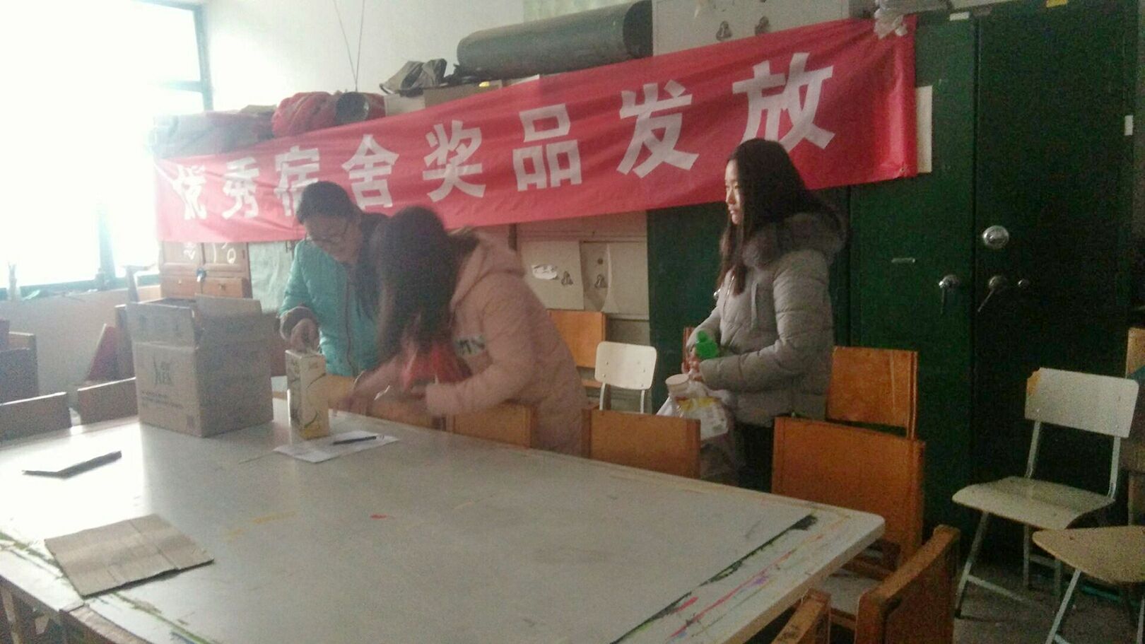 为了进一步推进宿舍卫生改善,加强宿舍管理,提高同学们的卫生意识和养成良好的行为习惯,财经系于2016年12月13日在JX5512对于上一期所评选出的优秀宿舍进行了奖品发放。