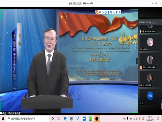首先大家集体在线上观看艺术节,本次艺术节内容丰富,大咖云集,不仅有中央音乐学院院长俞峰指挥全国百余所院校近万人参与演唱抗议歌曲,国际钢琴大师郎朗、著名音乐家吕思清、秦立巍等和国内各大乐团首席、中央音乐学院部分教师和国外著名校友等近百人参与演奏,还有俞峰院长连线对话郭淑珍、郑小瑛、瞿弦和等音乐家,回顾延安时期的音乐活动和《黄河大合唱》的创作演出情况;著名歌唱家雷佳连线贺敬之、郭兰英等老一辈音乐家畅谈第一部民族歌剧《白毛女》的创作和复排演出经历。