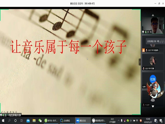 2020年5月27日上午,金融与会计学院19级辅导员张一鸣组织部分班级在美育云端课堂线上观看第二届中央音乐学院艺术节,并召开“让音乐属于每一个孩子”线上主题班会。