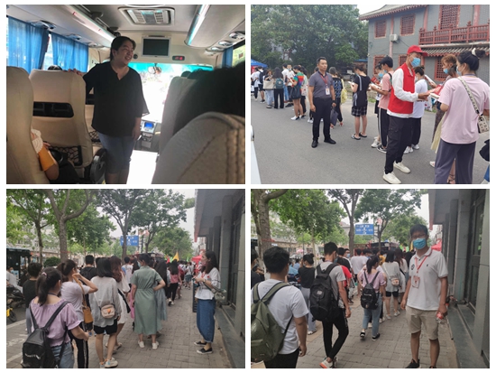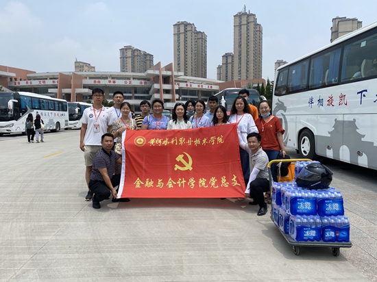 7月9日专升本考试当天,党总支书记殷莺、副书记胡晓慧带领学工团队及党员教师志愿者开展爱心送考服务。