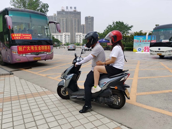 上午,张玓老师驾驶摩托车飞速前往七中为一名考生送去忘带的准考证,解决了考生的燃眉之急。下午,他再次骑摩托送一名严重晕车的考生赶赴考场,学生感动不已。