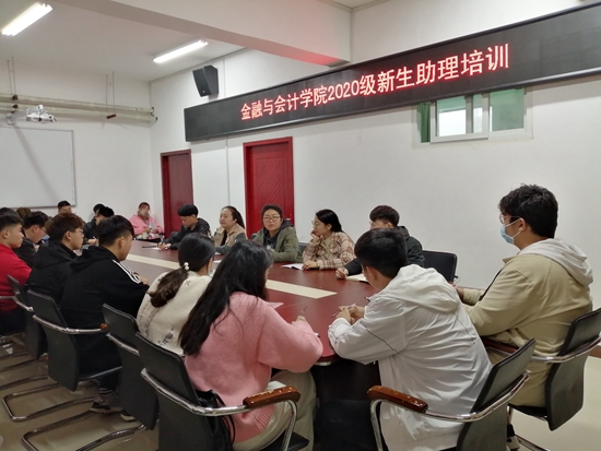 为使2020级新生辅导员助理尽快适应工作岗位,熟悉工作职责,10月14日中午,金融与会计学院在SY5412会议室举行2020级新生辅导员助理培训会,院党总支副书记胡晓慧、分团委书记马峥、2020级辅导员魏晓慧以及全体助理参加了此次会议。