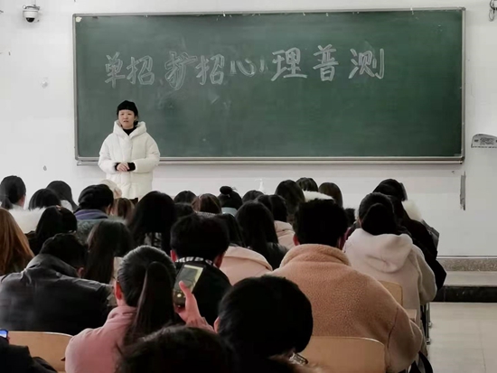 为进一步了解我院学生的心理特点,更好的开展学生工作,12月29日下午,我院在JX3210教室组织2020级单招扩招新生进行心理普测工作,学院心理指导老师方芳指导学生测评。