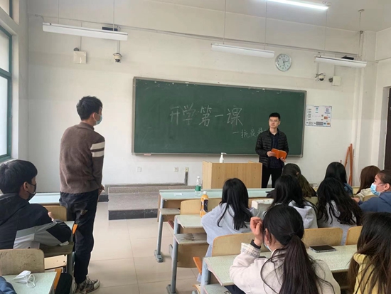 同日下午,19级和20级辅导员李朝阳在JX3310教室开展“开学第一课——致敬戍边英雄”主题班会。辅导员李朝阳带领大家一起学习了在“加勒万河谷冲突”中负伤的祁发宝和牺牲的陈红军、陈祥榕、肖思远、王焯冉4位烈士的英雄事迹,5名官兵用热血与生命书写了新时代军人忠诚爱国、以身许国、保家卫国的时代赞歌。在他们的身上,传承着革命英雄主义基因,燃烧着爱国主义的热血,他们是新时代“最可爱的人”,是青年学生学习的榜样。