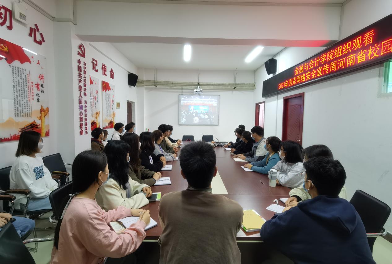10月12日下午,我院在SY5412会议室组织师生集中观看“2021年国家网络安全宣传周河南省校园日”直播,各年级学生代表参加。活动由分团委书记马峥主持。