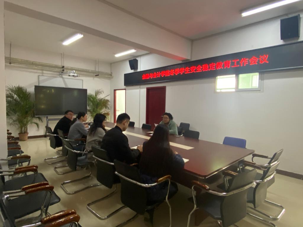 12月4日上午,金融与会计学院在SY5410召开2023年冬季学生安全稳定教育工作会议,会议由学院党总支副书记胡晓慧主持,分团委书记马峥及全体辅导员参加了此次会议。