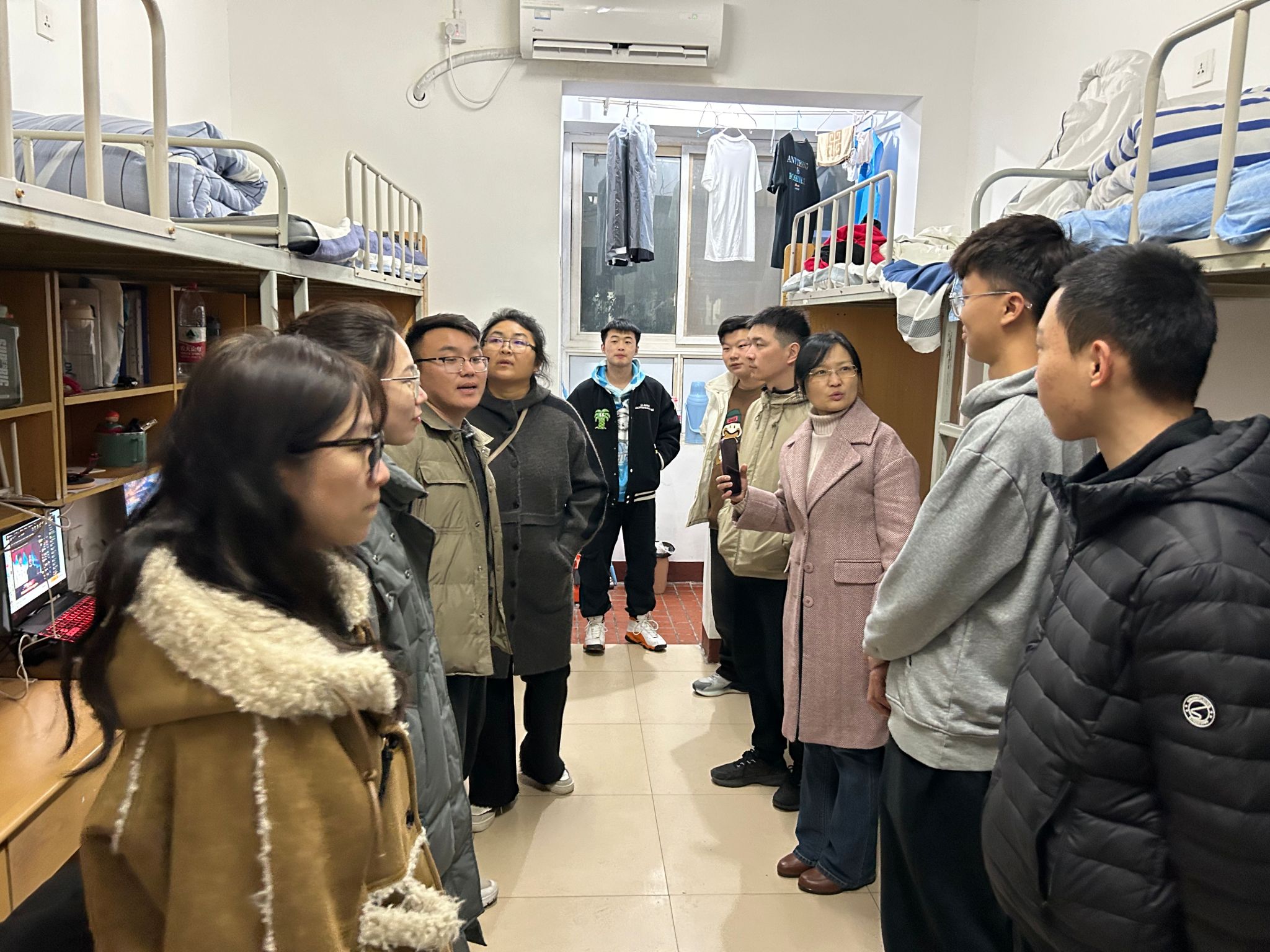 新学期伊始,为落实学生安全教育工作,增强学生安全防范意识,营造良好宿舍氛围。3月4日晚上,学院党总支书记胡晓慧带领副书记霍卫红、全体辅导员及部分学生干部深入学生宿舍开展学期初安全检查。