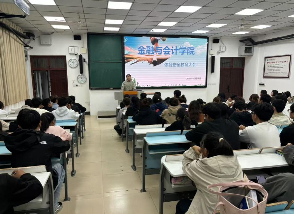 2024年10月18日中午,金融与会计学院在JX6103教室,为备战学校组织的系列新生杯文体活动,召开2024年下半年的学生健康与体育安全教育大会,学生会干部、各班班干部、各球队球员、运动员参加会议,会议由徐东亚老师主持。