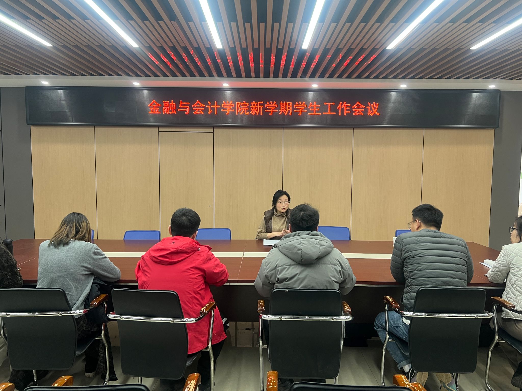 为深入贯彻落实学校新学期工作部署,锚定立德树人根本任务,统筹谋划学生工作重点,压实育人责任、凝聚工作合力,3月6日,金融与会计学院在SY5412会议室召开新学期学生工作专题会议。学院党总支副书记、学生办公室主任及全体辅导员参加会议。