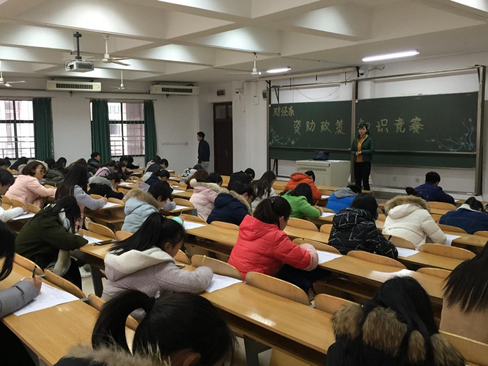 为了进一步加大高校家庭经济困难学生资助政策的宣传力度,推进国家助学贷款工作健康持续开展,增强广大学生的感恩和诚信意识,2016年11月29日下午三点,财经系在教学楼6206展开资助政策知识竞赛。本次竞赛是由系资助专员李灿老师、张满老师,系资助助理李静轩、占耀华监考,各年级申请助学金的同学进行笔试。