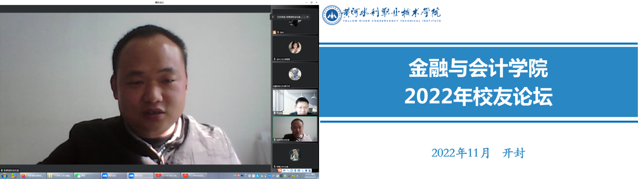 为充分发掘校友资源对大学生成长成才的促进作用,同时搭建母校与校友、校友与学生之间的互动交流平台。1125日,我院2022年校友论坛曁“榜样教育”宣讲活动以腾讯会议的方式在线上开展。本次校友论坛特邀我院2002级会计电算化专业优秀校友魏克涛、2009级会计电算化专业优秀校友张修波、2004级注会专业优秀校友王国清担任主讲嘉宾,我院院长李冠军、校企合作办主任张玓、2022级辅导员徐东亚以及2022级全体新生参加了会议,会议由我院党总支书记吴宗奎主持。