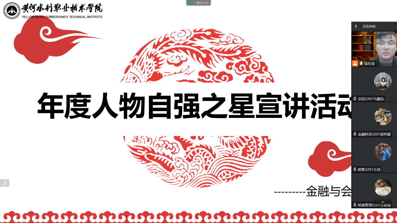 为激励我院学生自立自强,奋发成才,在学生中树立一批勤奋学习、不畏困难、勇于进取的先进典型,引导更多的学生向身边榜样学习。10月25日下午,我院“自强之星”宣讲活动在线上举行,宣讲会由2022级新生辅导员徐东亚主持,全体2022级新生参加了此次宣讲会。