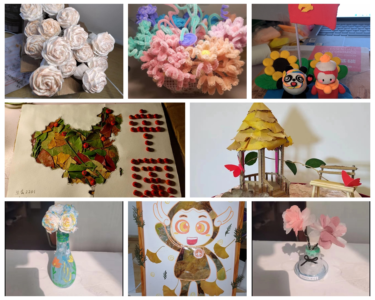 受疫情影响,本次活动由学院为家庭困难的学生发放手工技能材料,由同学们发挥想象力,在宿舍制作各种手工作品。经过同学们的精心设计和制作,最终成功制作出各具特色的成品。通过手工制作,不但获得了精美成品,还在疫情防控特殊时期,放松心态,体验了劳动的快乐。