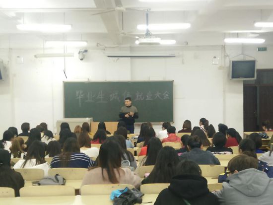 会上,孔静老师向毕业生们介绍了毕业实习和毕业论文的具体要求,并详细说明了就业政策、就业协议书的签订及安全就业知识。