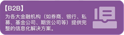 我们具有行业内最为齐全的产品线及完整的产业战略布局,涵盖了金融信息服务、移动证券平台、基金销售、人工智能投资、大宗商品经纪等业务领域,通过创新的产品和服务,持续满足国内90%证券机构与近两亿的个人客户的需求。