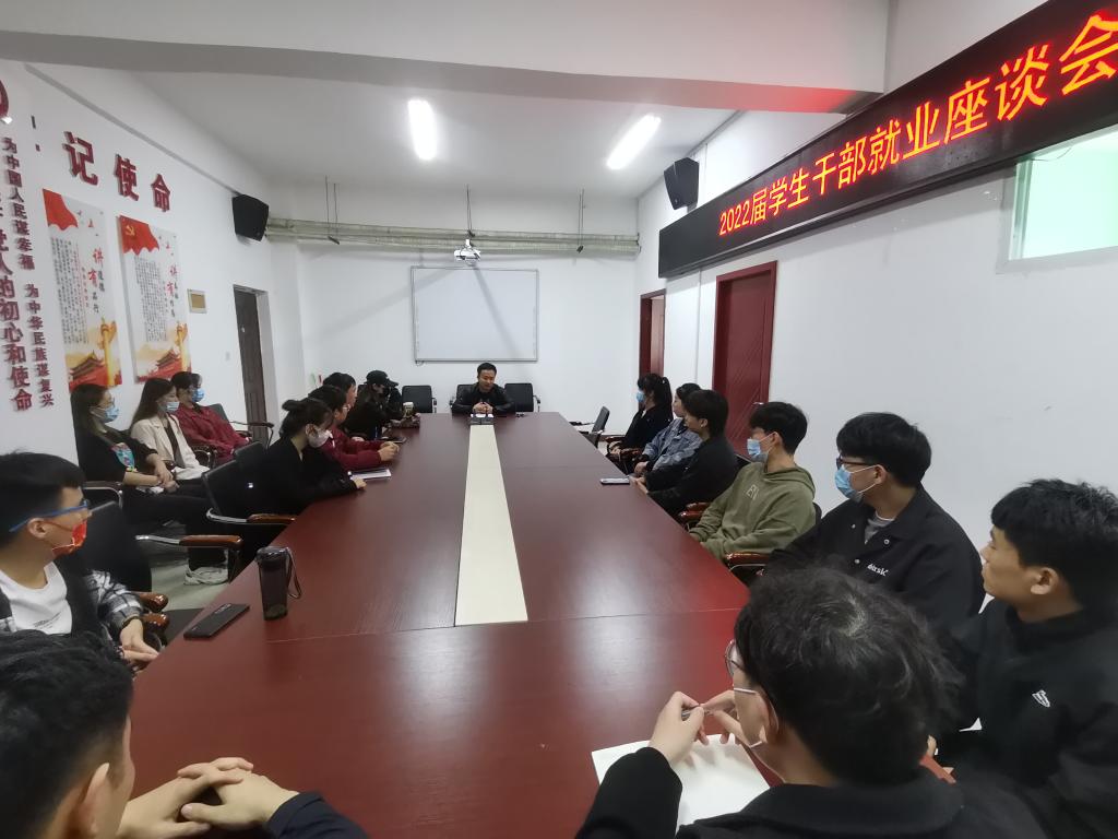 2021年10月15日我院在实训楼SX5410会议室组织召开了学生干部就业座谈会,会议由金融与会计学院校企合作办主任张玓主持。