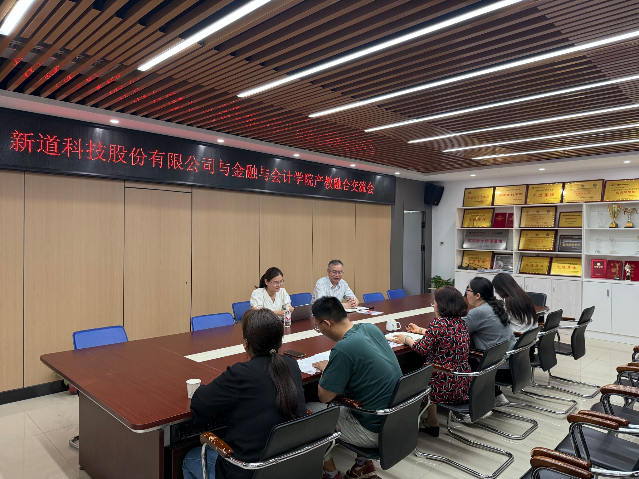 为深化校企合作、推动教育与产业协同发展,新道科技股份有限公司销售总监耿天霞于5月16日来我院开展产教融合交流会。我校金融与会计学院院长吴宗奎、副院长张会丽、副院长舒莎、各专业负责人及校企合作办参与本次交流会。双方围绕金融科技人才培养、课程共建、实践基地建设等议题进行深入探讨,共同探索“教育链-人才链-产业链”深度融合的创新路径。
