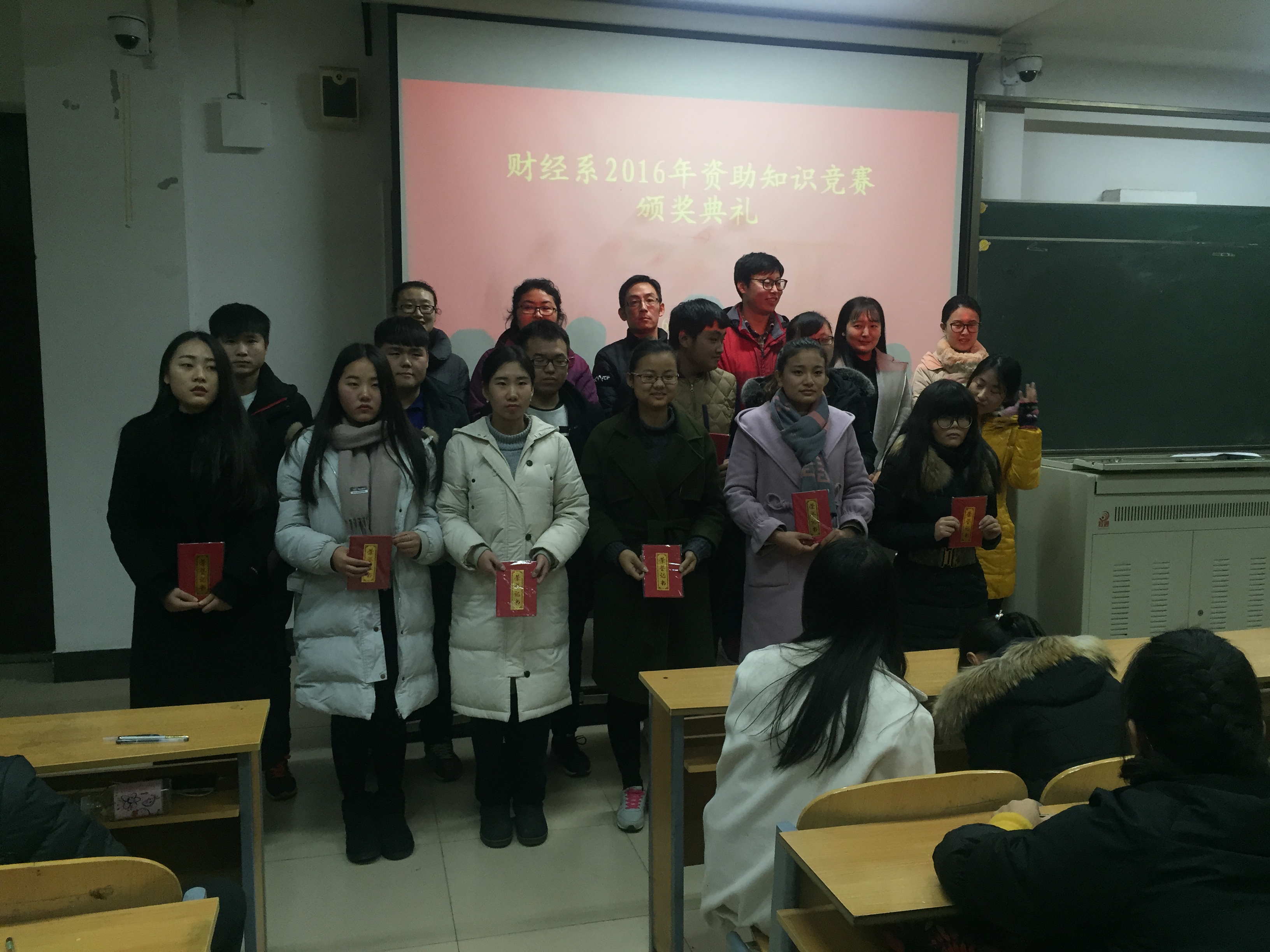12月22日晚上,财经系在JX6202召开资助政策知识竞赛颁奖仪式。参加颁奖仪式的有财经系党总支书记杜广平、副书记胡晓慧、分团委书记郝瑶、系全体辅导员老师以及各级学生代表。