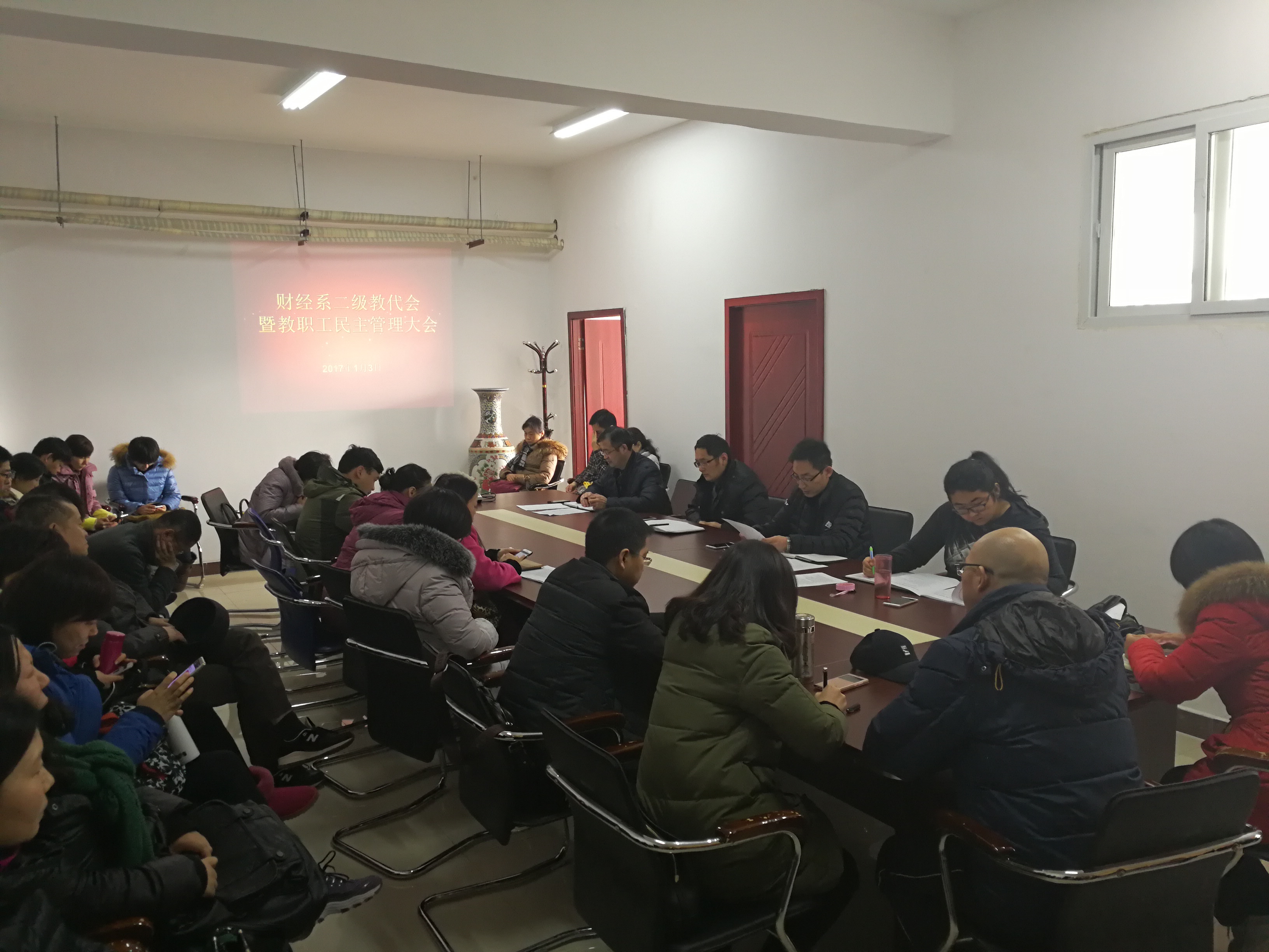 1月3日下午,财经系二级教代会在SY5412会议室举行。财经系主任宋建涛、书记杜广平、副主任吴宗奎、系分工会主席胡晓慧以及全体教代会代表参加了会议。会议由吴宗奎主持。