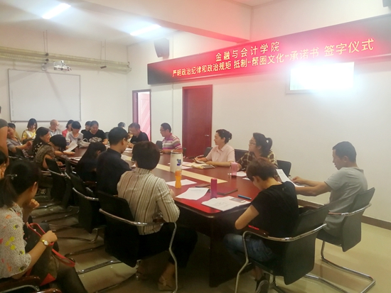随后,学院全体党员干部签署了抵制“帮圈文化”承诺书,进一步明确责任。通过签订承诺书,进一步严肃党内政治生活,净化党内政治生态,坚决整治在党内搞团伙、拉帮结派等违反政治纪律和政治规矩的行为。