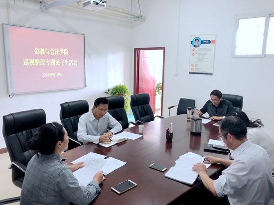9月27日,金融与会计学院党总支在SY5416召开巡视整改专题民主生活会,院领导班子全体成员出席会议,校纪委委员、审计处处长李冠军列席会议。会议由院党总支书记殷莺主持。