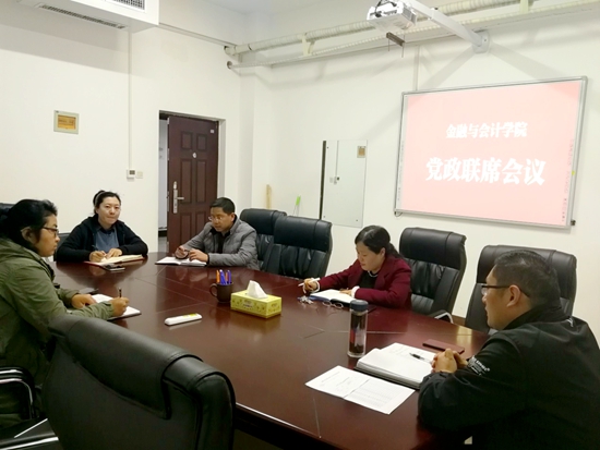 今年是我院首次评选创新创业奖学金,为了做好此项工作,11月5日,金融与会计学院召开党政联席会安排布置评选工作。会上,副书记胡晓慧带领班子成员一起学习黄院双创【2018】1号文件《关于评选2018年黄河水利职业技术学院大学生创新创业奖学金的通知》,领会精神,明确思想。