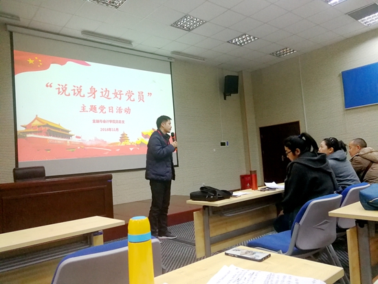 2018年11月24日上午,我院教工党支部在焦河南兰考裕禄干部学院会议室举行“说说身边的好党员”事迹宣讲主题党日活动。活动由教工党支部书记苏永彪主持,全体师生党员及教职工代表参加。