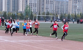 学院党总支书记殷莺为获得女子800米金牌、铜牌的我院选手王文文、李淼淼颁奖
