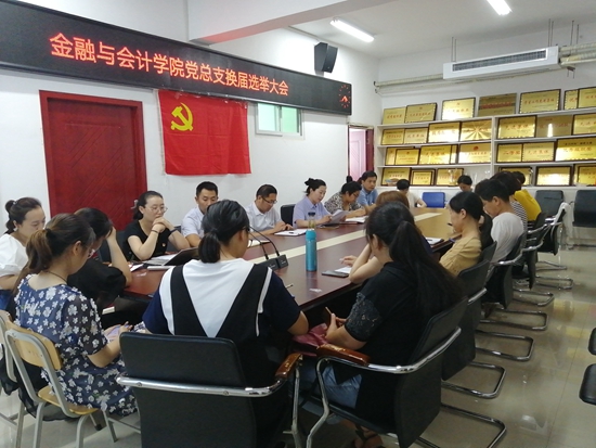 按照校党委统一安排部署,我院党总支于2019年6月25日下午在SY5410会议室隆重召开“金融与会计学院党总支换届选举大会”,全体党员参加大会,会议由党总支书记殷莺主持。