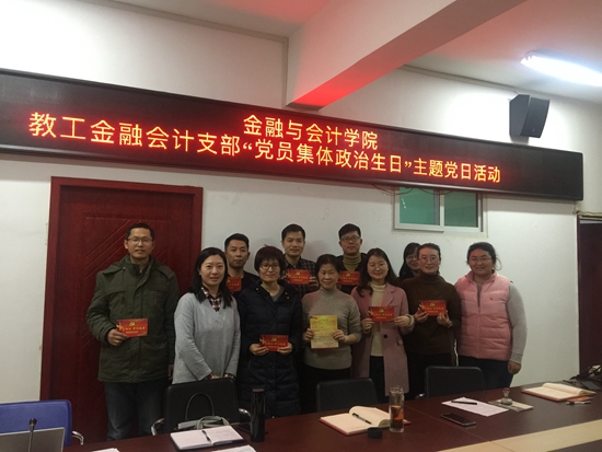 12月24日下午,教工金融会计党支部在SY5412党员会议室举行 “党员集体政治生日”主题党日活动,全体教工党员参加。活动由支部书记刘振威主持。