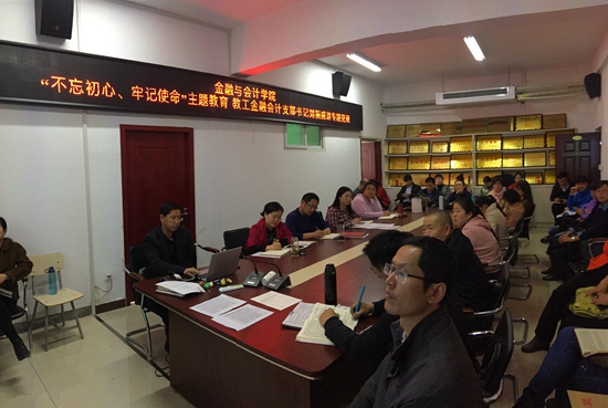 11月12日,金融与会计学院教工金融会计支部书记刘振威在SY5412会议室讲“不忘初心、牢记使命”专题党课,全体党员、教职工参加会议。会议由总支书记殷莺主持。