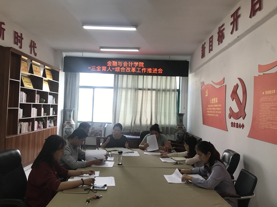 9月28日上午,我院在SY5407党员会议室召开“三全育人”综合改革工作推进会,院党总支书记殷莺、副书记胡晓慧及教工金融会计支部、学生金融会计支部全体支委参加。会议由院党总支书记殷莺主持。