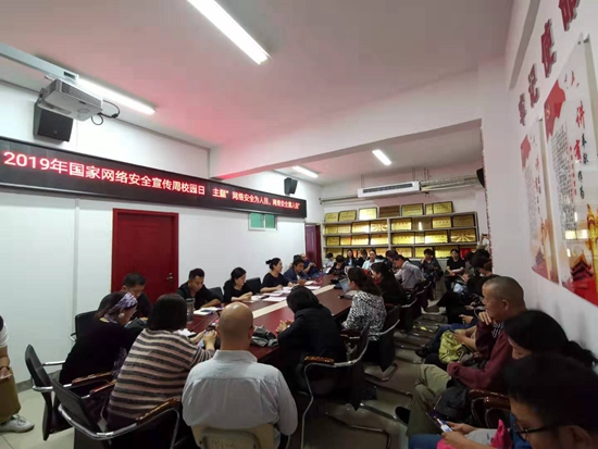 9月17日下午,我院在SY5412会议室开展2019年国家网络安全宣传周校园日宣传活动,全体教职工参加。活动由党总支书记殷莺主持。