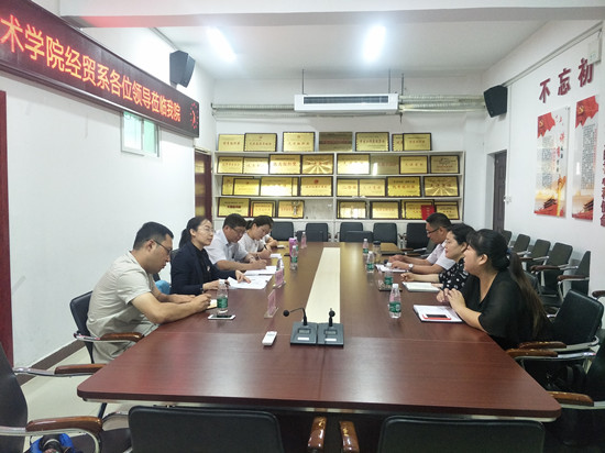 8月12日上午,商丘职业技术学院经贸系主任闫杰生一行5人到我校进行专业调研交流。座谈会在我校五号实训楼5413召开,金融与会计学院院长宋建涛出席会议。金融与会计学院教学管理和专业建设的相关负责人参会。